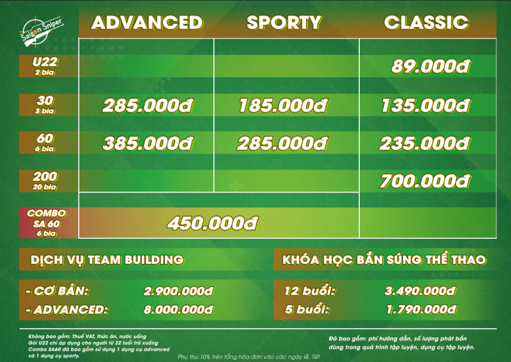 Bảng giá tại Saigon Sniper, áp dụng thì từ ngày 04/05/2026 Hơn 1 thập kỷ qua, Saigon Sniper khẳng định vị thế tiên phong trong